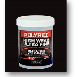 We also have 220 and 1200 mesh aluminum oxide grit. They are called High Wear Additive and High Wear Ultra Fine. Aluminum oxide grit will add minor slip resistance to the surface but more importantly will add durability to the coating it is used in. The High Wear Ultra Fine is so small that you will not see it on the surface. It will tone down the gloss a little bit and make the coating a lot harder, but you will not see or feel it. The High Wear Additive is great to add to clear topcoats, you want to apply the clear coat a lot thinner than normal. For example, instead of applying MCU 85 at 250 sq ft a gallon like we recommend, I apply it at 500 sq ft a gallon when High Wear is added to it. This makes a super durable, slip resistant surface that is great for interior applications.